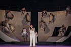 Das Musiktheater im Revier (MiR) widmet sich dem Stückemix „Orpheus und Eurydike“, eine Oper von Christoph Willibald Gluck mit einer Tanz-Choreografie von Giuseppe Spota. An diesem Abend treffen sich Barock und Moderne, zwei völlig verschieden Zeitepochen. Wie bringt man das zusammen? Das Ergebnis ist ein Versuch beide Epochen miteinander zu verschmelzen. Kurz zur Story. Der Sänger Orpheus (Constanze Jader) kommt nicht über den Tod seiner geliebten Eurydike (Heejin Kim) hinweg. Die Götter sind jedoch gnädig. Er darf sie zurückholen, nur darf er nie mehr in ihr Gesicht blicken. Sein seltsames Verhalten irritiert sie wiederum, was zu Folge hat, dass sie sich ansehen und sie daraufhin ein zweites Mal stirbt. Schließlich hat Amor (Tamina Biber) ein Einsehen und holt sie zurück. Die Geschichte endet mit einem Happy End. Was einfach klingt, das ist es nicht wirklich. Die barocken Töne der Neuen Philharmonie Westfalen, unter der Leitung von Giuliano Betta sind wirklich barock. Dem gegenüber steht ein Bühnenbild, welches in großem Format ein Viertel eines Globus darstellt, innen und außen. Außen ist auf den düsteren Galerien deutlich der Hades angesiedelt. Die Drehbühne sorgt für verschiedene Ansichten. Im Mittelpunkt steht musikalisch Constanze Jader als Orpheus. Im Original ist eine Kastratenstimme vorgesehen, die seit über 120 Jahren von deutschen Bühnen verschwunden ist. Man besetzt solche Rollen heutzutage gerne mit Frauenstimmen. Da Eurydike lange stumm anwesend ist, ist Constanze Jader über eine lange Dauer die einzige Gesangspartie auf der Bühne. Hinzu kommt, dass ihr innerer Kampf oftmals die gleichen Sätze gerne wiederholen lässt. Eine gewisse Monotonie, stimmlich und inhaltlich, ist zu vernehmen. Da später Heejin Kim als Eurydike und schließlich Tamina Biber als Amor ähnlich gute Frauenstimmen zu bieten haben, fehlt es am Kontrast einer männlichen Stimme. Die drei Gesangspartien müssen zudem die Aufmerksamkeit mit 14 TänzerInnen der MiR Dance Company teilen. Sie visualisieren tänzerisch die inneren Kämpfe und Sehnsüchte oft durch marionettenartige Bewegungen. Ihre Choreo wirkt genauso schwer wie das Bühnenbild. Der Hades ist nicht leichtfüßig. Ihr Tanzstil enthält dabei eine große Portion Akrobatik. Unterstützt werden alle vom Opernchor, der vom 2. Rand aus ertönt. Ganz nah dran ist man zu Beginn beim Vorspiel im Foyer, wo Musiker und TänzerInnen das Publikum einstimmen, eine gute Idee. Es ist keine leichte Kost, inhaltlich und optisch. Der im Sommer scheidende Giuseppe Spota, Direktor der MiR Dance Company, war für die Choreografie, die Inszenierung, das Bühnenbild und die Kostüme verantwortlich, seine letzte große Arbeit am MiR. Datum: 6. Dezember 2025 musiktheater-im-revier.de |
