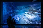 Im Mittelpunkt steht die antarktische Küstenlandschaft – dort, wo Gletscher, Schelfeis und Eisberge aufeinandertreffen und sich in einer reduzierten, beinahe surrealen Farbpalette entfalten. Die Darstellung spielt mit der Wasserlinie als zentraler Perspektive: Über der Oberfläche ragen mächtige Eisformationen in die Höhe, während unter Wasser das verborgene Leben der Antarktis sichtbar wird. Eine Besucherplattform eröffnet den Blick auf diese Welt aus einer Perspektive, die sonst nur wenigen Forschenden vorbehalten ist.