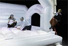 Das Grillo Theater präsentiert in der ADA das Schauspiel „Am Königsweg/Endsieg“ von Elfriede Jelinek, ein thematisch sehr aktueller Abend. Regie führte Alina Fluck. Alles dreht sich um den Präsidenten der USA, Donald Trump. Der Text entstand bei seiner Wahl zur ersten Amtszeit. Die Texte sind voll mit Bezügen aus Literatur und Politik, die Sätze gestaucht. Faschismus ist eine Gefahr für die Demokratie. Frau Jelinek wurde 1946 geboren, wie Trump. Es ist ein Streit zwischen dem König und der Autorin. Man folgt den Gedanken, nicht einer Geschichte, eine Analyse der politischen Gegenwart. Was ist das für ein König? Wie sind diese Massen, die ihm folgen? Die Texte wurden mit dem Hammer bearbeitet, in dialogische Form gebracht und sehr stark verdichtet. Der erste Teil erinnert stark an antike Mythologie, Sophokles oder Odipus. Seherinnen die nichts sehen, sehen besser, aber alle sind blind für die Situation. Es sind auch selbstkritische Texte aus demokratischer Sicht, Gründe, die den König haben dazu werden lassen. Seine eigene Schuld sieht er nicht, es ist kein Schuldbekenntnis ist erkennbar. Dabei ist Trump ein Straftäter. Finanzbetrug, Steuerbetrug, sexueller Missbrauch und der Putschversuch im Kapitol werden ihm zur Last gelegt. Wie kann man seine Schuld nicht erkennen? Nach der Pause diskutiert man über Trumps Amtszeit hinaus, eine apokalyptische Stimmung. Wer ist er? Man möchte der Finanzwelt eine Gestalt geben. Es gibt Versprechen für eine glänzende Zukunft, viele Versprechen und Schulden, seine Weltanschauung. Mehr Waffen als Menschen, Gewalt folgt auf Gewalt. Der Wandel in der Gesellschaft ist unausweichlich. das Alte wird dabei allerdings das Neue, mit Odipus als Sinnbild. Der von Gott auserwählte Vorkämpfer droht mit Gewalt und egal was er sagt, es muss wahr sein, viel Fake als Propaganda und Lügen über Lügen. Viele werden von ihm erblindet. Es ist ein sehr schwieriger Text, auch für die SchauspielerInnen, aber eine große Leistung von Mansur Ajang, Christopher Heisler und Silvia Weiskopf. Oft lässt man geistig abreißen, bekommt dann wieder inhaltliche Schlagwörter oder einzelne Sätze mit. Viele geheimnisvolle Bilder sowie eine sehr bildhafte und teils geschwollene Sprache machen das Verfolgen des Abends nicht einfach, trotz zeitweiser Monitore mit Text zum Lesen. Ein großer Kritikpunkt ist das Bühnenbild, eine Hüpfburg als ein weißes Schloss, nur leider passen die Proportionen des Bühnenbildes nicht in dem Raum. Es ist viel zu groß geraten. Nur die wenigen Plätze in der Mitte sehen vernünftig. Für alle anderen wird das Schauspiel oft zum Hörspiel. Waren die Raummaße nicht bekannt? Das Bühnenbild von Marleen Johow ist gar keine gute Idee. Datum: 24. September 2025 www.theater-essen.de |