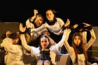 Es ist sehr viel Text, der etwas zu schnell und intensiv dargeboten wird. Trotzdem sind es gute Leistungen der jungen Schauspielerinnen. Es spielen Fee Brünnen, Joana José Grunow, Romy Kemmerling, Eva Klaka, Salma Lotfy, Theresa Mietzger, Mariia Prymakova, Mila Vischedyk, Felia Weigelt und Jadon Jill Winkel. Es gibt Live-Musik an der Violine, der Gitarre und am Klavier von Felia Weigelt. Regie führte Sina Ebell.